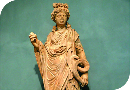 A Deusa Salus, na mitologia romana, era filha de Esculápio Deus da medicina. Enquanto seu pai era associado diretamente com a cura, sua filha era associada com a prevenção da doença e a continuação da boa saúde.
