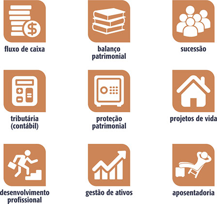 Neste momento e no decorrer de todo o acompanhamento, o planejador ficará atento às diversas questões pertinentes as necessidades do cliente como: fluxo de caixa; balanço patrimonial; sucessão; tributária (contábil); proteção patrimonial; projetos de vida; desenvolvimento profissional; gestão de ativos e aposentadoria, com o intuito de oferecer os melhores resultados para cada necessidade.